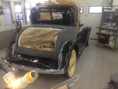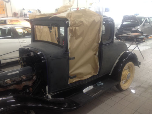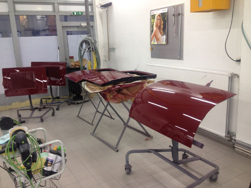 Og hér er byrjað að taka bílinn í sundur fyrir sprautun.