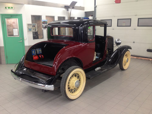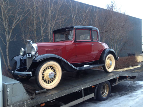 Hér er hann kominn inn á verkstæðið mitt og búið að setja á hann númerið sem ég valdi á hann, RE. 31, í stað þess sem var á honum..