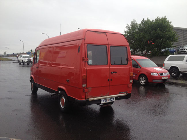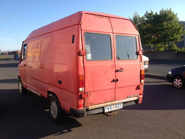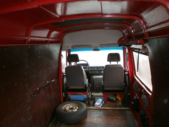 Eins og venjulegur gamall sendibíll að inna. Það vissulega sér á hinu og þessu eftir hinar ýmsu vöruveltur um rýmið.