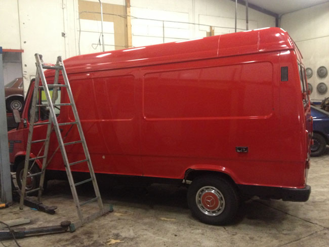 Ljóst var í upphafi að uppgerð bílsins myndi ekki hefjast alveg strax og því var ákveðið að taka svona snöggsnyrtingu á bílnum til að hann liti betur út og gæti verið umferðar og rólfær fram að uppgerð. Hér er búið að massa lakkið og bletta í verstu ryðskellurnar, setja á hann Benz hjólkoppa, í stað Subaru koppanna sem voru á honum, og þrífa hann hraustlega.