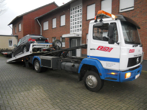 Við upphaf ferðar frá Nordhorn til Hamborgar. Góður þýskur vinur minn hann Andreas keyrði bílinn fyrir mig til skips. Hér er bíllinn að kveðja Auto Service Jansen, fyrirtækið sem átti bílinn á undan mér.