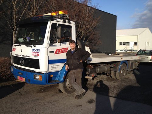 Ég hef lengi haft eitthverja ótrúlega þörf fyrir að eiga bílaflutningabíl og var í 9 ár búinn að eiga einn Mercedes-Benz 709D árgerð 1991 með föstum flatpalli og sliskjum. Hann reyndist mér svosem ágætlega, en hann var farinn að kalla svolítið á að vera tekinn töluvert í gegn og einnig fannst mér hann of lítill, vélarvana og alls ekki líkaði mér vel þessi fasti sliskjupallur. Ég ákvað því að selja hann og finna mér annan bíl. Sú leit reyndist reyndar þegar á hólminn var komið ekki eins auðveld og ég hélt að hún yrði. Þjóðverjar hafa ótrúlegan húmor fyrir sliskjupöllum og eða mjög kjánalega útfærðum bílaflutningapöllum. Ég keypti því einn Mercedes-Benz 814L árgerð 1989 grindarbíl í Þýskalandi og ætlaði að smíða á hann bílaflutingapall eins og ég vildi hafa hann. Sá bíll var rétt mátulega kominn á skerið þegar ég fann þennan 817L bíl með palli og öllu saman og það var ljóst að hann var þegar allt var reiknað til enda ódýrari og raunhæfari kostur. Þennan bíl keypti ég því í Þýskalandi í febrúar 2016 til að flytja hann inn. Bíllinn kom til landsins í mars 2016 og reyndist vera virkilega gott eintak a svona bíl og hefur staðið sig eins og hefja í þeim verkefnum sem honum hafa verið falin. Alltaf má þó gera gott betra og er ætlunin að pósta inn myndum af lagfæringum og betrumbótum eftir því sem við á. |
