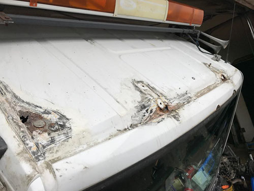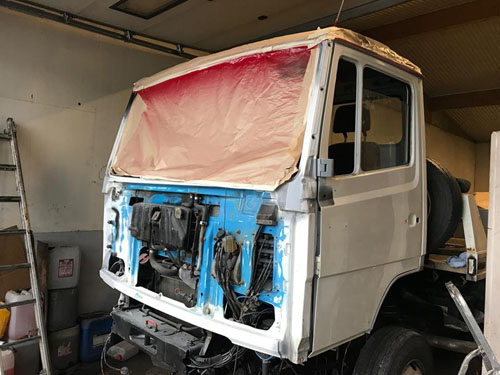 Uppfært 15.8.2017 Þrátt fyrir að bíllinn væri að upplagi góður voru nokkur atriði sem mátti laga og gera betri eins og gerist og gengur með gamla bíla. Að vori 2017 var tekin ákvörðun um að taka bílinn töluvert í gegn og laga í honum ýmis atriði sem betur mátti fara. M.a. var ákveðið að setja nýja glussakistu fyrir pallinn svo fjarstýra mætti öllum hreyfingum og einnig var ákveðið að taka bæði hús og grind og mála það allt upp á nýtt og skipta um lit á bílnum. Skemmst er frá því að segja að sú vinna vatt upp á sig og varð að lokum að stórkapphlaupi við að klára hann fyrir Landsmót Fornbílaklúbbs Íslands sem haldið var á Selfossi síðla júnímánaðar 2017, en það rétt tókst, örfáum klukkutímum fyrir brottför. Hér á eftir fer myndasería af þessari lagfæringarvinnu og ætlum við að láta myndirnar tala sínu máli að þessu sinni.